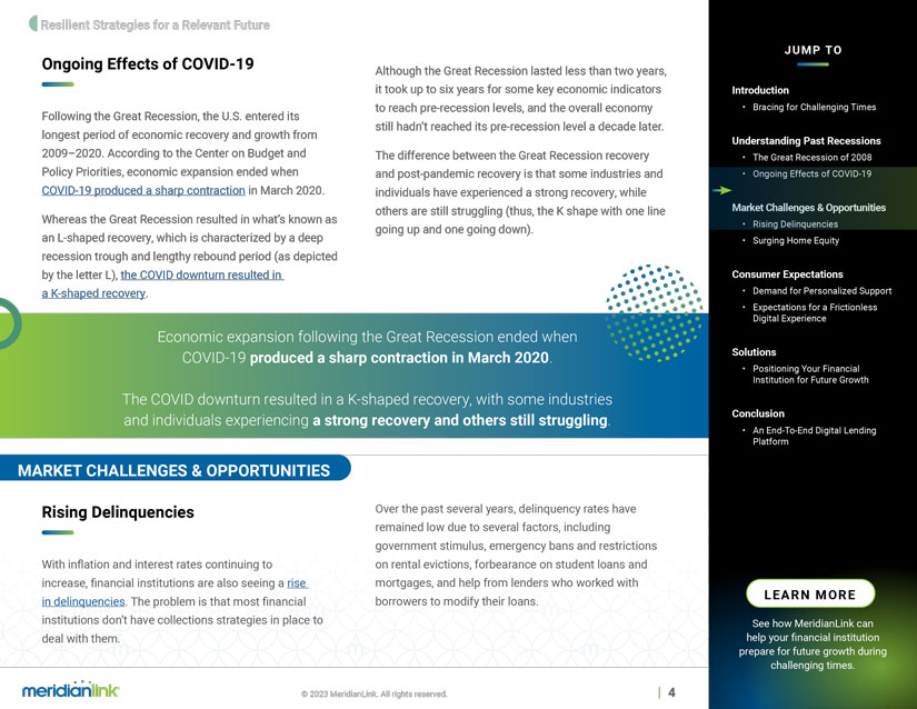 • Lessons learned from past economic downturns